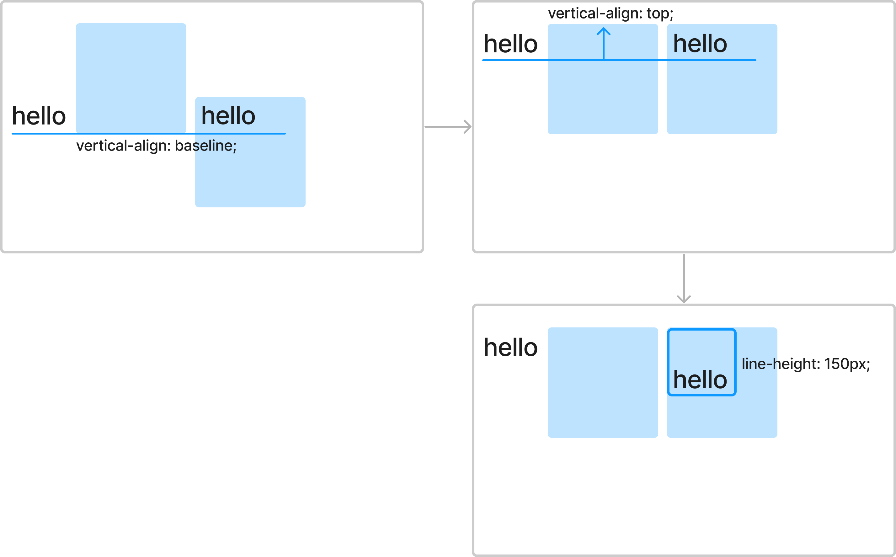 블록 요소 하위에 텍스트가 있는 경우 세로 정렬이 이상해진 경험이 있을 것이다. 처음엔 무엇이 문제인지 몰랐는데, inline-block의 특성 상 텍스트의 크기만큼 높이를 잡기 때문에 생긴 문제였다. 그래서 텍스트가 없는 요소와 정렬이 틀어지게 되었다.