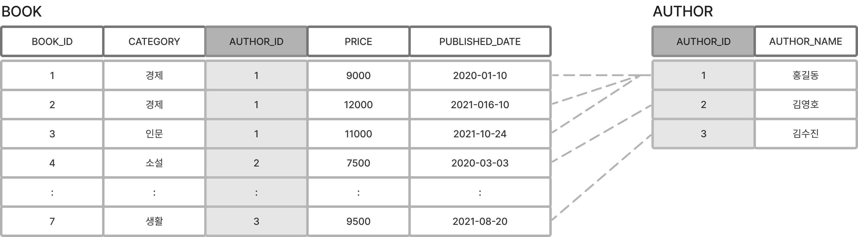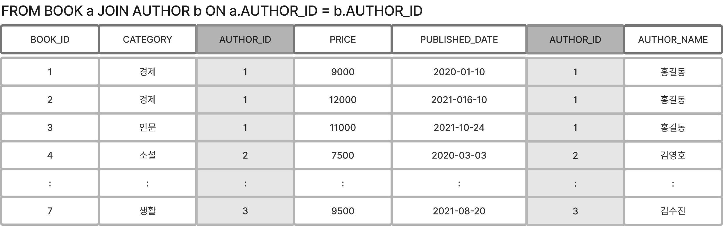 - BOOK 테이블과 AUTHOR 테이블을 JOIN 한다.