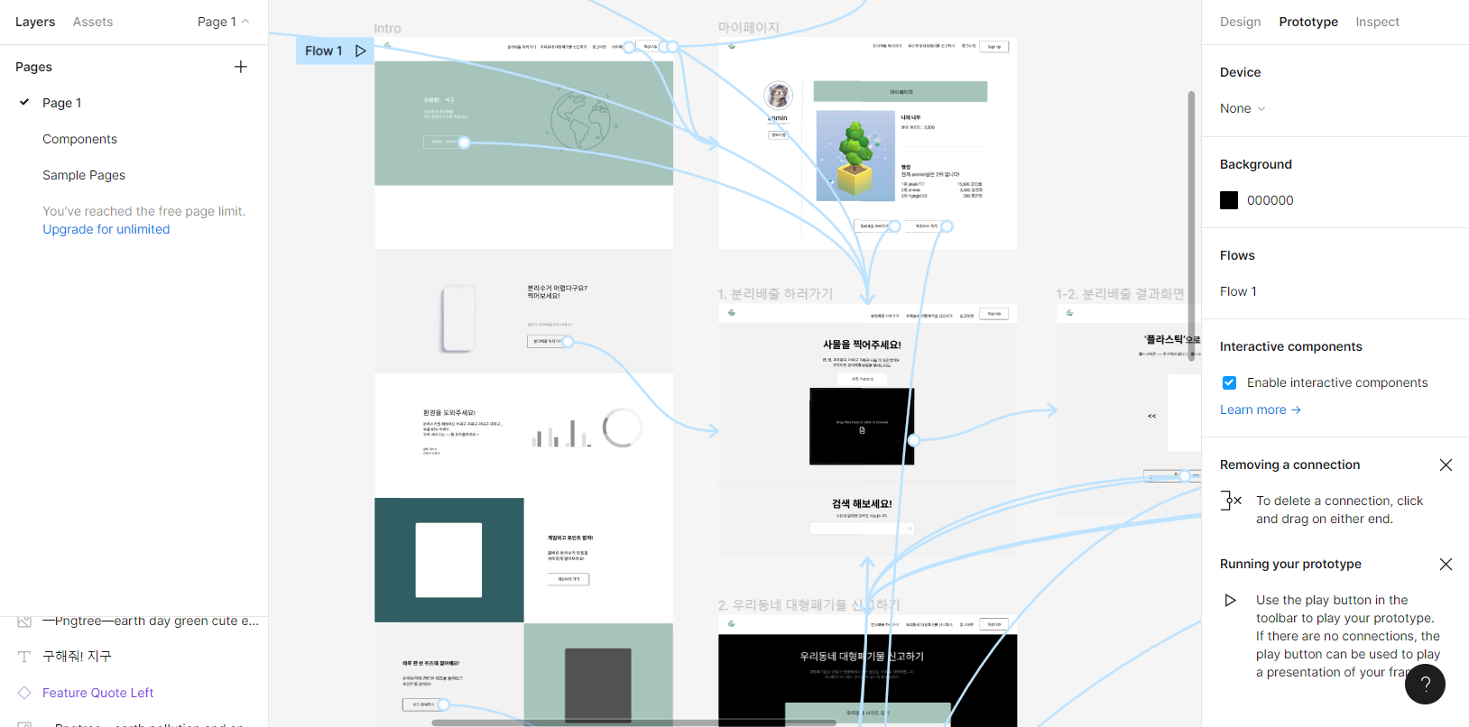Note. Figma 와이어프레임 화면 간 연결