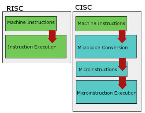 | 예 | MIPS, ARM, PowerPC | Intel x86, DEC VAX 11/780 |