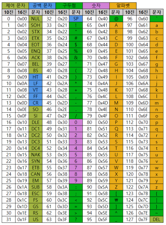 문자를 아스키코드로 변경하기